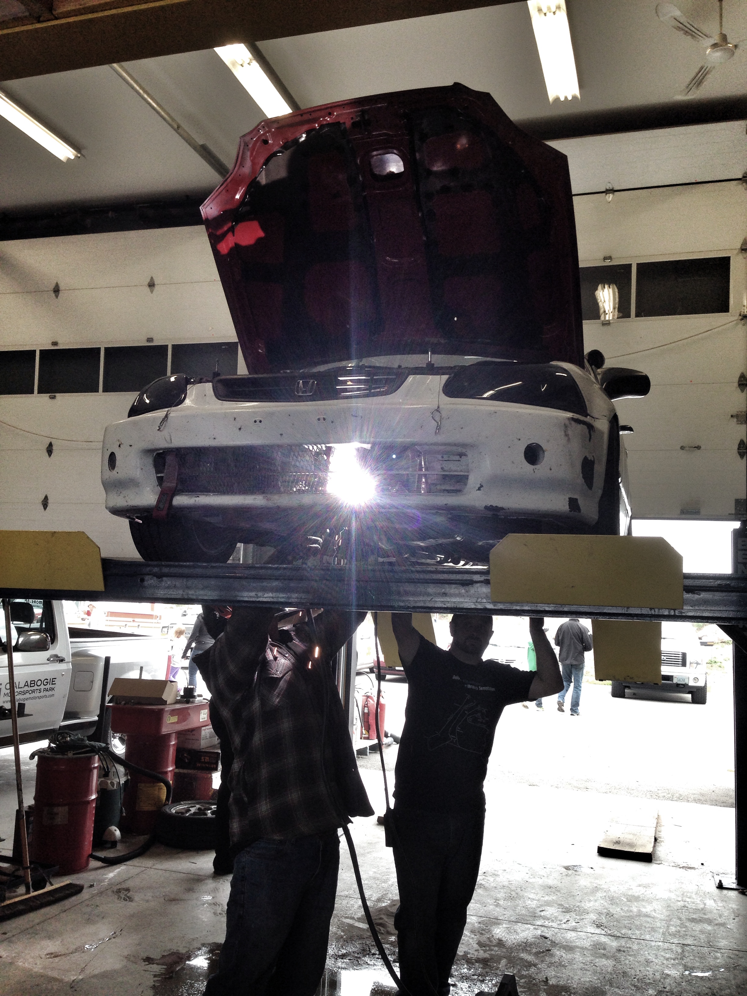 Les deux premières heures se sont très bien déroulées. Steve Morneau a pris le départ (de la 24e place) et a pu gagner quelques positions. À peine 5 tours après le changement de pilote, alors qu’Olivier Benloulou était au volant, l’embrayage a rendu l’âme! Il fallait absolument entrer aux puits. Trevor Hill, co-propriétaire de la voiture s’est démenés afin de remplacer la pièce défectueuse le plus rapidement possible. 1h30 plus tard, on revenait en piste avec un retard de 37 tours sur les meneurs!